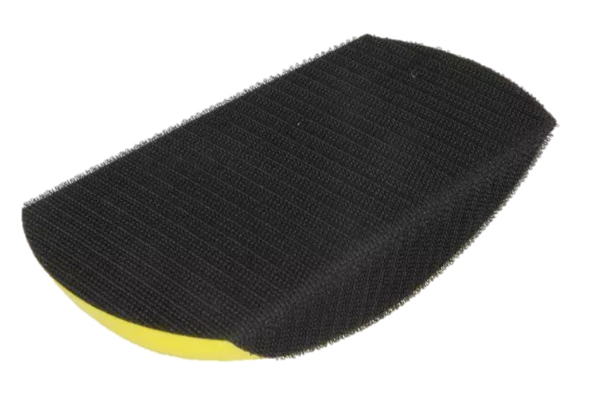 Um bloco manual com sistema de fixação com tecido (Hook & Loop) permite uma troca rápida do abrasivo em uso e, por ser leve e ergonómico, garante um maior controlo da aplicação enquanto reduz a fadiga.