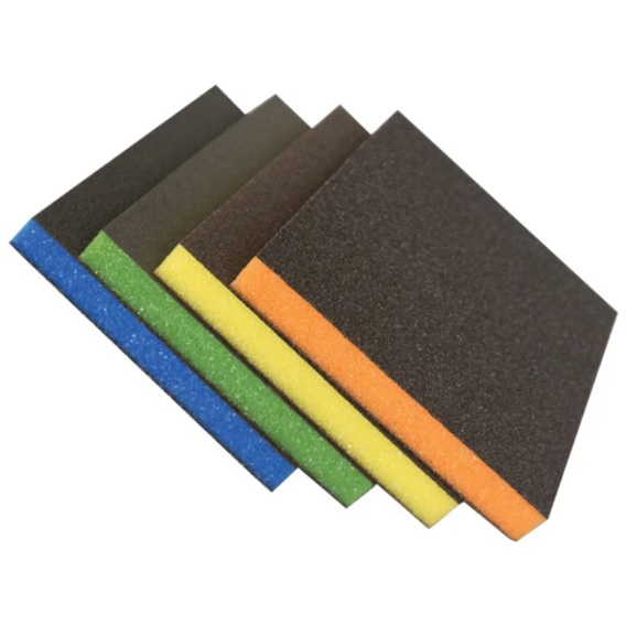 As esponjas duplas adaptam-se facilmente ao formato da peça a trabalhar. Com abrasivo de ambos os lados, o tempo de vida útil é prolongado. Apresentam as seguintes vantagens: